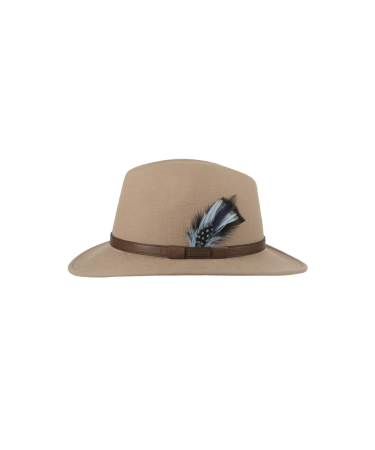 This hat is extra stylish with an imitation leather band and feather on the left side and is available in sizes S, M, L and XL, in the colours putty, brown and navy.