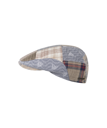 The Buga is a stylish flat cap, also known as an ivy cap, with a striking blue patchwork pattern. This dainty model is suitable for men and women and available in sizes S to XL. The fabric composition consists of 50% cotton and 50% linen, while the lining is 100% cotton.